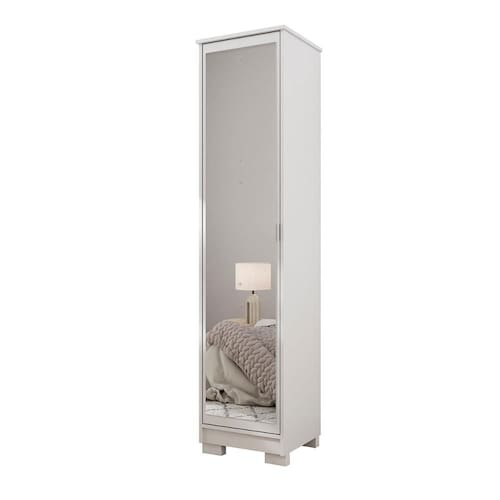 Quantidade de portas: 01 com espelho em módulos 78 cm x 51 cm x 0,3 cm (dobradiças metálicas);