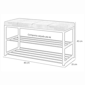 A Sapateira Banco com Assento Estofado é perfeita para quem busca organização, conforto e estilo no dia a dia. Com estrutura em ferro industrial resistente e acabamento em pintura eletrostática preta fosca, ela oferece durabilidade e um design moderno. Seu assento estofado confortável permite calçar ou tirar os sapatos com comodidade, enquanto os dois níveis inferiores acomodam diversos pares de calçados de forma funcional e charmosa.