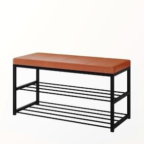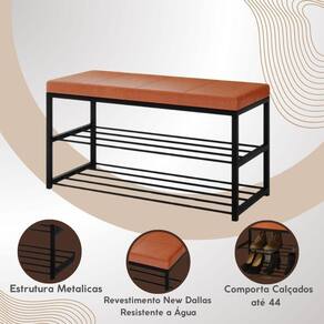 Banco Sapateira 2 Andares Estrutura Metálica Preta com Assento Estofado - Design Industrial e Funcional