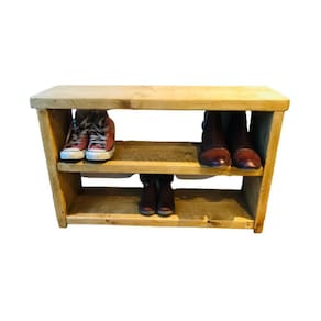 Sapateira banco infantil madeira maciça 50x32x20cm A nossa linha de moveis não para de crescer e agora traz para você, esta linda sapateira compacta e ideal para organizar diversos ambientes da casa. A sapateira banco infantil com 2 prateleiras é ideal na otimização de espaço e com certeza vai deixar a sua casa mais organizada Deixe que os pequenos troquem de sapatos confortavelmente sentando-se no banco sapateira. Seu desenho permite deixar os calçados sempre à vista. A prateleira favorece a fácil higienização e o não acumulo de resíduos. Seu design neutro é muito fácil de ser combinado a estilos variados, e se encaixa na composição de diversas partes da casa. Com esta sapateira rústica de madeira maciça vai ficar fácil deixar seus sapatos sempre em ordem e bem arejados. Use-a no quarto, closet, ou hall de entrada e aproveite toda sua funcionalidade e praticidade. :::dimensões aproximadas::: 32 cm altura. 50 cm comprimento. 20 cm profundidade (pode variar entre 19 e 20cm). Espessura de todas as partes: de 1,8 a 2,2cm. Material: madeira maciça pinus; Cor do verniz: jacarandá fosco Todos as nossos produtos são feitos à mão e nos esforçamos para lhe entregar o mais rápido possível. Por serem artesanais, eles podem variar ligeiramente nas cores e veios da madeira. :::sobre a compra Será enviado código de rastreio logo após a postagem do produto. :::antes de comprar Tire todas as suas dúvidas no campo perguntas e respostas do vendedor. Os objetos decorativos não acompanham o produto Fotos meramente ilustrativas. Fique à vontade para nos fazer perguntas. Ao clicar em comprar, o cliente declara que leu a descrição do anúncio, e que conferiu os dados referentes à compra, como medidas, possível variação de cor e/ou tonalidade, e que compreende que trata-se de um produto rústico, onde o acabamento rotineiramente não é perfeito. Marca: Loja Do Pinho