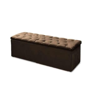 linda Sapateira Baú Casal 47x138x51 em Suede Marrom. Ideal para quem busca modernidade para o quarto e espaço para guardar cobertores, roupas de cama, travesseiros, entre outros.