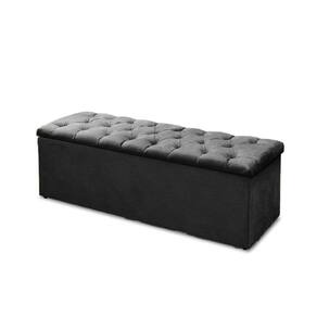 linda Sapateira Baú King 47x193x51 em Suede Preto. Ideal para quem busca modernidade para o quarto e espaço para guardar cobertores, roupas de cama, travesseiros, entre outros.