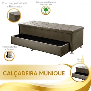 Com lindo design essa linha apresenta a calçadeira com medidas variadas e cores atuais que são boas escolhas para quem busca e renovar a decoração do quarto, sem deixar de lado o conforto e a praticidade. Resistente e confeccionada com materiais de alta qualidade, suas medidas são indicadas para o uso com base box e colchão. A sapateira tem compartimentos como baú e gaveta para guardar roupa de cama e sapatos afins. Combine-a com travesseiros e almofadas de sua preferência e torne sua decoração ainda mais charmosa e aconchegante.