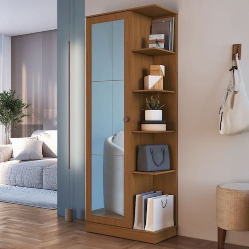 O(a) Sapateira Camille 1 Porta 8 Prateleiras com Espelho Branco/Freijó - Indékes é produzido em MDP na escala de brilho Fosco, e possui um grau de dificuldade de montagem: Médio.