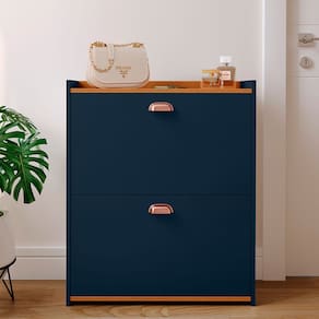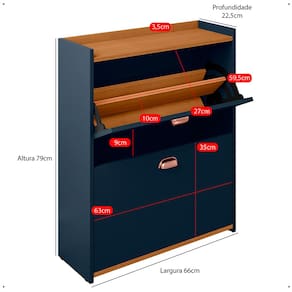 Fabricada em MDP de alta qualidade, oferece resistência e durabilidade. Conta com duas gavetas basculantes com prateleiras, ideais para armazenar até 12 pares de calçados, mantendo tudo organizado e harmonioso.