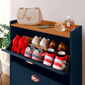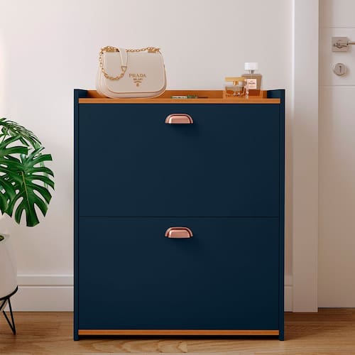 Sapateira Closet Vertical Organizadora 12 Pares Calçados Unissex Prateleira 2 Andares Gavetas Basculante Azul/Cedo- Lojas RPM