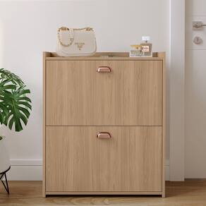 Fabricada em MDP de alta qualidade, oferece resistência e durabilidade. Conta com duas gavetas basculantes com prateleiras, ideais para armazenar até 12 pares de calçados, mantendo tudo organizado e harmonioso.