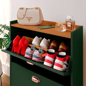 Sapateira Closet Vertical Organizadora 12 Pares Calçados Unissex Prateleira 2 Andares Gavetas Basculante Verde/Cedro - Lojas RPM