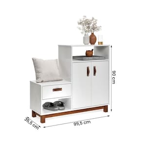 Sapateira com Banco Organic 3 Portas Pés de Madeira Maciça - Branco