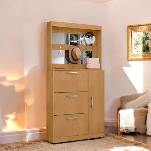 Esse conjunto de sapateira e espelho é perfeito para pessoas que precisam dos seus pertences perto, com elegância e praticidade!