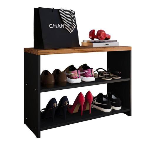 Sapateira Compacta Quarto Hall Entrada Prateleira Organizadora Banqueta Decoração Moderna - RPM Móveis - Marrom Escuro