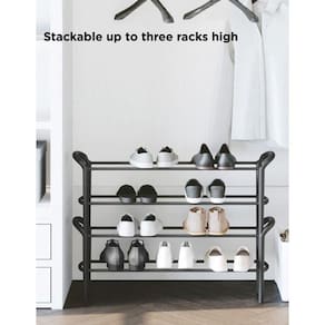 "Organize seu corredor ou quarto com a sapateira Shoestack da Umbra. Com um tamanho pequeno e camadas empilháveis, o Shoestack pode acomodar até doze pares de sapatos, sem ocupar muito espaço.