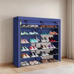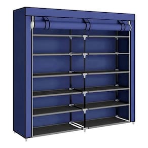 Sapateira dobrável prática de pano com duas divisões e 6 pisos. Feito de tecido respirável de excelente qualidade, plástico e metal. Possui persianas com velcro e bolsos laterais. Ideal para manter seus sapatos ou outros objetos arrumados e sem ocupar muito espaço.