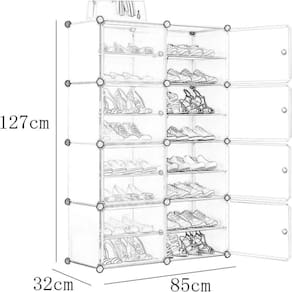 A Sapateira Dupla Armário Modular Ajustável Organizador é uma solução prática para organizar até 32 pares de sapatos, proporcionando funcionalidade e estilo ao seu espaço.