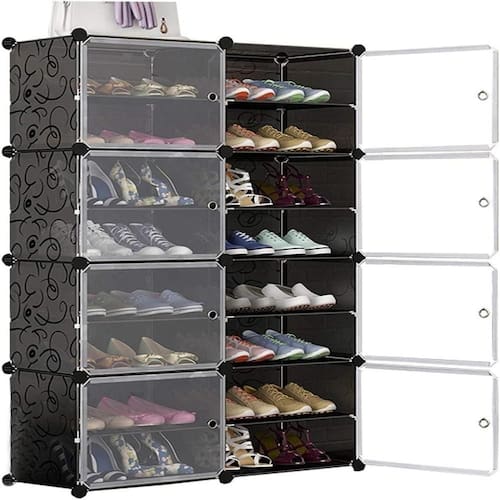 Capacidade Generosa: Armazena até 32 pares de sapatos em 8 compartimentos fechados.