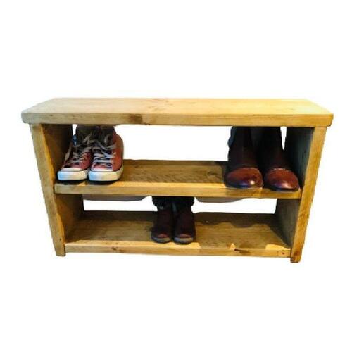 Sapateira e banco 2 prateleiras madeira maciça - 1 metro A nossa linha de moveis não para de crescer e agora traz para você, esta linda sapateira compacta e ideal para organizar diversos ambientes da casa. A sapateira banco com 2 prateleiras é ideal na otimização de espaço e com certeza vai deixar a sua casa mais organizada Troque de sapatos confortavelmente sentando-se no banco sapateira. Seu desenho permite deixar os calçados sempre à vista. A prateleira favorece a fácil higienização e o não acumulo de resíduos. Seu design neutro é muito fácil de ser combinado a estilos variados, e se encaixa na composição de diversas partes da casa. Com esta sapateira rústica de madeira maciça vai ficar fácil deixar seus sapatos sempre em ordem e bem arejados. Use-a no quarto, closet, ou hall de entrada e aproveite toda sua funcionalidade e praticidade. Cor do verniz: jacarandá :::dimensões::: 40 cm altura 100 cm comprimento 24 cm profundidade Espessura de 1,8 a 2,2 cm em todas as madeiras. Material: madeira maciça. Todos as nossos produtos são feitos à mão e nos esforçamos para lhe entregar o mais rápido possível. Por serem artesanais, eles podem variar ligeiramente nas cores e veios da madeira. :::sobre a compra Postagem: 1 dia útil. O prazo começa a contar após a aprovação da compra. Será enviado código de rastreio logo após a postagem do produto. :::antes de comprar Tire todas as suas dúvidas no campo perguntas e respostas do vendedor. Produto enviado montado Os objetos calçados decorativos não acompanham o produto. Fique à vontade para nos fazer perguntas. Marca: Loja Do Pinho