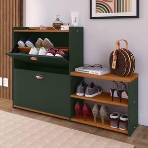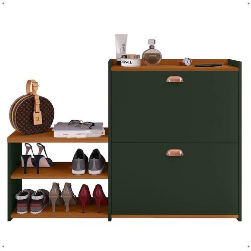 Sapateira Hall Entrada 2 Gaveta Basculante Puxador Concha Banco Prateleira Porta Sapatos Sala Quarto Retrô Milano - RPM - Verde