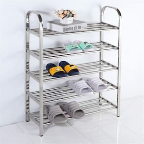 Organize seus calçados com praticidade e estilo com esta sapateira em aço inoxidável, que combina funcionalidade e design moderno.