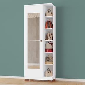 Transforme sua organização com a Sapateira Laila! Fabricada 100% em MDF, oferece alta durabilidade e design moderno para combinar com qualquer ambiente. Com excelente divisão interna e cinco prateleiras, ela garante praticidade e otimização de espaço. Além disso, acompanha dois espelhos, agregando ainda mais funcionalidade e estilo ao seu dia a dia. Não perca a chance de ter um item versátil e elegante em sua casa!