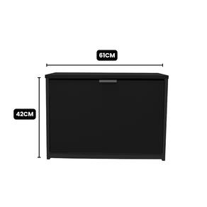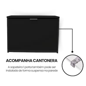 Com apenas 24cm de profundidade, ela é super fina ("slim") e discreta. Seu acabamento branco traz uma sensação de limpeza e amplitude ao ambiente. Possui uma porta basculante com capacidade média para até 6 pares de calçados (dependendo do modelo e numeração).