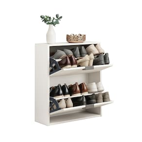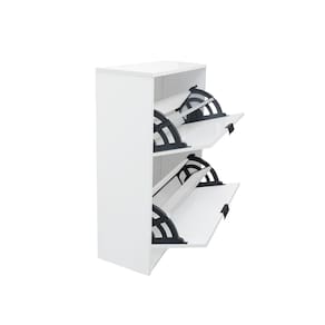 Função Dupla: Organiza sapatos e serve como mesa de apoio lateral.