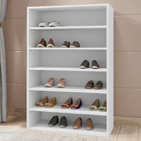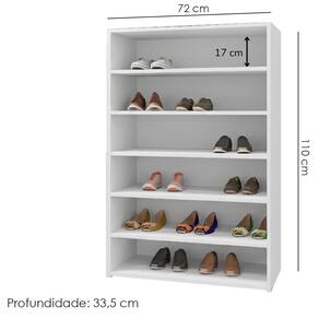 Sapateira Multiuso Lais, moderna, compacta e ideal para manter a organização do dia a dia. Estrutura em MDP de 12/15 mm (fundo de 3 mm) com acabamento em pintura UV. Conta com 5 prateleiras suportando até 18 pares de sapatos (distância por prateleira de 17 cm), mantendo tudo bem distribuído e de fácil acesso. Multifuncional, é ideal para quartos, closets ou áreas de serviço. Produto será entregue em 01 volume.