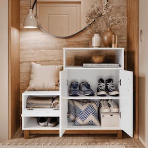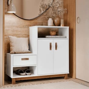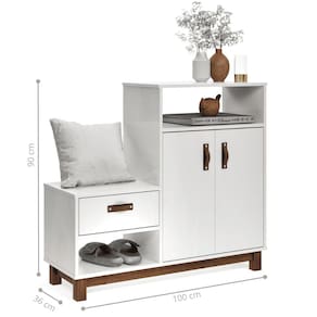 Se você busca um móvel que une praticidade, elegância e funcionalidade, a Sapateira com Assento é a escolha perfeita! Dimensões do produto montado: Altura: 90 cm Largura: 100 cm Profundidade: 36 cm Características: - Material MDF/MDP - Cor branco - Prateleira - Porta - Nicho Itens Incluso: 01 Sapateira. Kit completo para montagem. Manual de montagem. Observações: - Não nos responsabilizamos pela montagem do produto. - Sistema de Montagem: Parafusos, Cavilhas e Tampos. - É recomendado que a montagem seja feita por um profissional qualificado. - As imagens indicam uma sugestão de uso e são apenas ilustrativas, os objetos decorativos não estão inclusos. - Ao iniciar a montagem, forre o chão com o papelão das embalagens para proteger as peças de arranhões. Instruções e Cuidados: Limpar com pano seco, manter em lugar livre de umidade, ao abrigo de exposição direta ao sol.