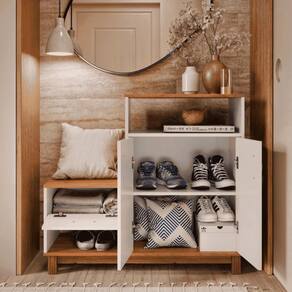 Sapateira Multiuso Utah Off Freijó Se você busca um móvel que une praticidade, elegância e funcionalidade, a Sapateira com Assento é a escolha perfeita! Dimensões do produto montado: Altura: 90 cm Largura: 100 cm Profundidade: 36 cm Características: - Material MDF/MDP - Cor freijó/off white - Prateleira - Porta - Nicho Itens Incluso: 01 Sapateira. Kit completo para montagem. Manual de montagem. Observações: - Não nos responsabilizamos pela montagem do produto. - Sistema de Montagem: Parafusos, Cavilhas e Tampos. - É recomendado que a montagem seja feita por um profissional qualificado. - As imagens indicam uma sugestão de uso e são apenas ilustrativas, os objetos decorativos não estão inclusos. - Ao iniciar a montagem, forre o chão com o papelão das embalagens para proteger as peças de arranhões. Instruções e Cuidados: Limpar com pano seco, manter em lugar livre de umidade, ao abrigo de exposição direta ao sol. INSTRUÃ?Ã-ES/CUIDADOS: Limpar com pano macio e seco, nÃo utilizar produtos abrasivos. | GARANTIA DO FABRICANTE: 3 | QUANTIDADES DE CAIXAS DE EMBALAGEM: 1 | COR PREDOMINANTE: FREIJO/OFF WHITE | CORES DO PRODUTO (FILTRO DE CORES): FREIJO/OFF WHITE | DESCRIÃ?Ã?O DO TAMANHO: 90X100X36 | MATERIAL PRINCIPAL: MDF/MDP | ESTADO DE ORIGEM: SP | PRODUTO PRECISA DE MONTAGEM?: Sim, a montagem à facil mas sugerimos a contrataÃÃo de um montador profissional para a montagem do produto. NÃo nos responsabilizamos por danos causados no ato da montagem. | ALTURA DO PRODUTO (CM): 90 | LARGURA DO PRODUTO (CM): 100 | COMPRIMENTO DO PRODUTO (CM): 36 | PESO DO PRODUTO (KG): 29 | ALTURA DO PRODUTO COM EMBALAGEM (CM): 15 | LARGURA PRODUTO COM EMBALAGEM (CM): 1 | COMPRIMENTO PRODUTO COM EMBALAGEM (CM): 42 | PESO PRODUTO COM EMBALAGEM (KG): 30 | PRODUTO: SAPATEIRA | MARCA: CASAH | QUANTIDADE DE PORTAS: 2 | QUANTIDADE DE NICHOS: 2 | QUANTIDADE DE GAVETAS: 1 | QUANTIDADE DE PRATELEIRAS: 1