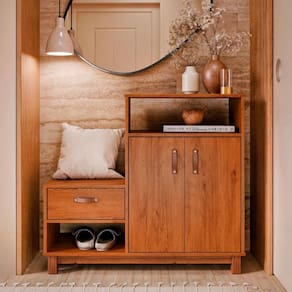 Com um design que une funcionalidade e elegância, a Sapateira Orgânic é perfeita para quem busca praticidade no dia a dia sem abrir mão do visual moderno é valorizado pelas linhas suaves do estilo orgânico, pelos pés em madeira maciça e pelo puxador exclusivo revestido em corino, que adiciona um toque de sofisticação e textura ao assento integrado proporciona mais conforto ao calçar ou tirar os sapatos, tornando o uso ainda mais prático no cotidiano.Internamente, o amplo espaço de armazenamento permite organizar calçados e acessórios com facilidade, mantendo tudo em ordem e acessí proporções bem definidas e acabamento de alta qualidade, é uma peça versátil que se adapta com elegância a diferentes ambientes, como halls, closets ou dormitóões:Altura: 90 cmLargura: 99,5 cmProfundidade: 35,5 cmObservações:- Design com linhas suaves e estética orgânica - Pés em madeira maciça, com excelente resistência e durabilidade - Puxador exclusivo revestido em corino, com toque moderno e refinado - Assento integrado para maior conforto ao calçar ou descalçar - Amplo espaço interno para organização de calçados e objetos - Estrutura funcional e acabamento de alta qualidade