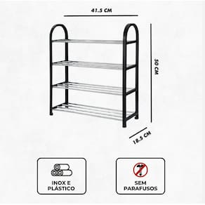 4 Andares com Amplo Espaço: Diga adeus à bagunça! Com 4 prateleiras, o organizador oferece espaço para armazenar até 8 pares de tênis ou outros itens de tamanho similar. O design compacto (dimensões: 41,5 cm de altura x 18,5 cm de profundidade x 50 cm de largura) permite que você aproveite áreas reduzidas sem sobrecarregar o ambiente.