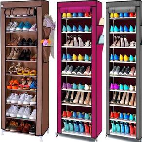 Estrutura vertical para organização de calçados, composta por 9 níveis e fechamento frontal em zíper. Indicada para uso em áreas internas, com capacidade para armazenar diversos pares de sapatos.