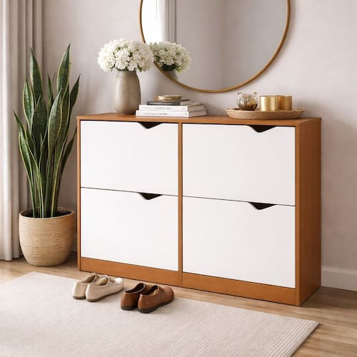 A Sapateira Porto com 4 gavetas é ideal para quem busca organização, praticidade e melhor aproveitamento de espaço. Com pintura UV, oferece acabamento uniforme, visual moderno e maior resistência para o uso diário. Suas medidas são 92 cm de altura, 110 cm de largura e 26 cm de profundidade, ideais para ambientes como quartos, closets ou áreas de circulação. Desenvolvida para acomodar sapatos de numeração até 44, sua capacidade pode variar conforme a largura e o posicionamento dos calçados, com média aproximada de 24 pares. Disponível em 8 variações de cores, a Sapateira Porto se adapta facilmente a diferentes estilos de decoração, entregando funcionalidade, organização e excelente custo-benefício em um único móvel. Acabamento da Gaveta: Pintura UV Ambiente Principal: Quarto codigo_ean: 7900288313690 Complexidade da Montagem: Média: pode ser montado por mais de uma pessoa e/ou necessite de maior conhecimento para montagem Cor: Branco/Freijó Cor do Produto: Branco/Freijó Escala de Brilho: Semi-Fosco Escala de Brilho da Gaveta: Semi-Fosco Gaveta com Chave: Não Itens Inclusos: 1 Sapateira, Kit Ferragens, Manual de Montagem e Termo de Garantia Linha ou Coleção: Porto Manual de Montagem e Instalação: https://product-hub-prd.madeiramadeira.com.br/404446750/documents/95faebb9-0072-476f-91a7-1e5b3d7fadf73362299622417688512682046.pdf Marca: Politorno Material da Gaveta: MDP Material Principal: MDP Necessita Montagem: Sim Origem do Produto: Nacional Peso: 16,52 kg Peso Máximo por Gaveta: 5 kg Possui Espelho: Não Possui Possui Pés: Não Possui Portas: Não Possui Prateleiras: Não Recomendações de Uso, Manutenção e Limpeza: Utilize um pano macio umedecido com água e sabão neutro, seguido de pano seco. Não utilize produtos químicos ou abrasivos para limpeza, pois estes danificam o revestimento do móvel. Sapatas Niveladoras: Sim Sistema de Montagem: Cavilha, Parafuso, Minifix e prego. Suporta Até (kg): 20 kg Tipo de Corrediça da Gaveta: Plástica Tipo de Puxador da Gaveta: Embutido Marca: Não Informado