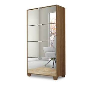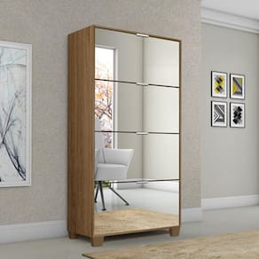 Sapateira com Espelho, 4 Portas, MDP, Moderna, Retrô, Pequim, Quarto, Organização, Calçados, Espelho Decorativo, Móveis Funcionais, Pés de Madeira, Pintura UV, Puxador Alumínio, Estilo e Praticidade, Montagem Fácil, Compacta
