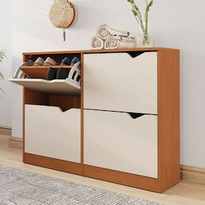 O(a) Sapateira Porto 4 Portas Off White/Freijó - Politorno é produzido em MDP na escala de brilho Semi-Fosco, e possui um grau de dificuldade de montagem: Fácil.