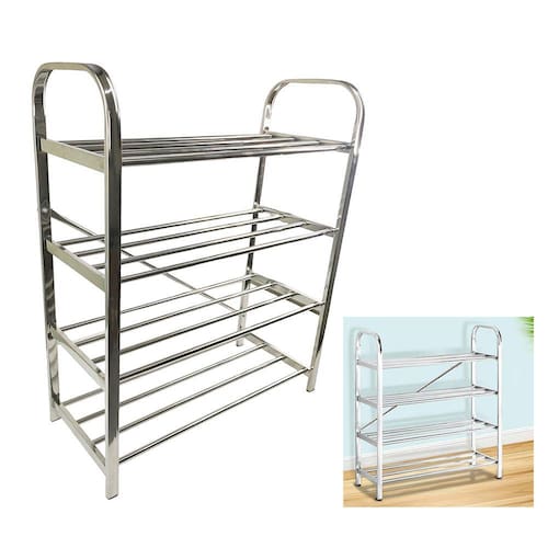 A sapateira possui 4 andares, não ocupa espaço e é fácil de guardar. Pode armazenar bem todos os tipos de sapatos.