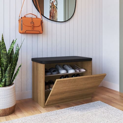 Já pensou em ter todos os seus sapatos organizados de uma forma prática, com muita beleza e aquele design moderno? Para isso temos a sapateira puff SP0007, que além de você guardar seus calçados, serve também de puff para sentar. Acabamento da Porta: Poliéster Acabamento da Prateleira: Poliestireno Ambiente Principal: Quarto codigo_ean: 7900288223876 Complexidade da Montagem: Baixa: pode ser montado por uma pessoa sozinha Cor: Mel/Preto Cor do Produto: Mel/Preto Cor do Puxador: Avelã Cor Flex: Não Cor Interna: Mel Escala de Brilho: Fosco Escala de Brilho da Porta: Fosco Escala de Brilho da Prateleira: Fosco Itens Inclusos: 1 Sapateira, Kit Ferragens e Manual de Montagem Linha ou Coleção: Quarto Manual de Montagem e Instalação: https://product-hub-prd.madeiramadeira.com.br/272810132/documents/a48d8c41-f9de-4066-bddf-466b23f0a0ec3164435522517563130908892.pdf Marca: Plasmóbile Material da Porta: MDF Material da Prateleira: Madeira Maciça Material Principal: MDP Montagem Flex: Não Necessita Montagem: Sim Origem do Produto: Nacional Peso: 12,5 kg Peso Máximo por Prateleira: 3 kg Possui Espelho: Não Possui Possui Pés: Não Possui Portas: 01 Possui Prateleiras: 02 Recomendações de Uso, Manutenção e Limpeza: Para a limpeza do móvel utilizar pano levemente umedecido Sapatas Niveladoras: Não Sistema de Montagem: Parafuso e Cavilhas Suporta Até (kg): 110 kg Tipo de Dobradiça/Corrediça da Porta: Metálica Tipo de Madeira Maciça da Prateleira: Pinus Tipo de Porta: Basculante Tipo de Puxador da Porta: Não Possui - Abertura por Fecho Toque Marca: Não Informado