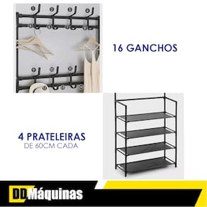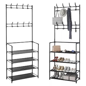 O Cabideiro Organizador com Sapateira da Fasterr é a escolha ideal! Com ganchos para casacos, blusas, bolsas, bonés, chapéus e guarda-chuvas, além de prateleiras espaçosas para organizar seus sapatos, este item é perfeito para manter seu espaço organizado de forma simples e eficiente.