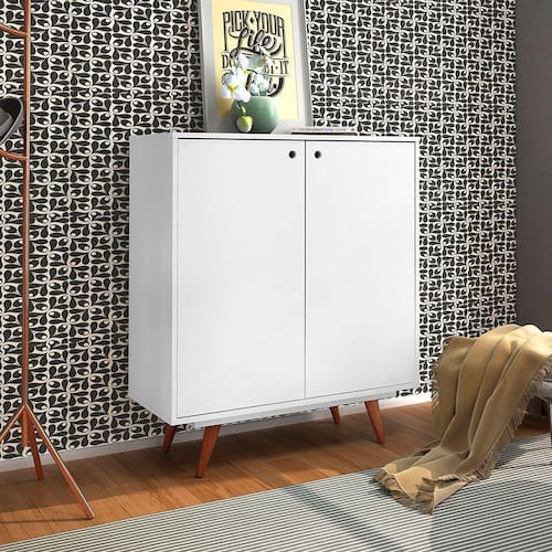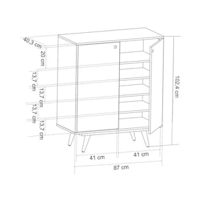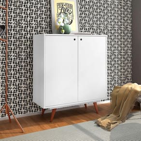 SAPATEIRA RETRO 50 BRANCO MDF/MDP 87CM OLIVARA Sapateira Retrô 50, possui portas de rotação em MDF, prateleiras para acomodação de diversos sapatos. Possui pés palito em madeira, trazendo o design Retrô.Cor: Branco AC ? Branco AcEscala de brilho: Acetina e TouchDimensões (LXPXA): 87 X 40 X 100 CMMaterial da estrutura: MDP e MDFAcabamento: UVPeso do produto montado KG: 37,5kgNecessita de montagem? SimQuantidade de prateleiras: 8Tipos de prateleiras: FixaDistância máxima e mínima entre prateleiras: - Quantidades de nichos: -Quantidades de gavetas: Não possuiTipos de portas: RotaçãoMaterial dos puxadores: Não possuiRodízios: Não possuiTipos de pé: Pés palitoSuporta até (KG): 30KgEspaço para TV(LXAXP): L- 87 X P- 40CMAcompanha suporte TV: Não possuiPossui furação para passagem de cabos: NãoPossui manual de montagem: SimRecomendação de limpeza: Pano úmido. Não aplicar lustra móveisVolumes: 2Garantia: 3mesesSapateira Retrà 50 Olivar