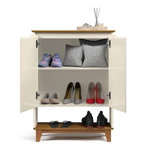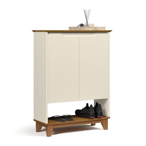 Organização e Praticidade: Com 2 portas, 1 nicho e 2 prateleiras, a sapateira oferece amplo espaço para armazenar diversos tipos de calçados.