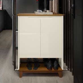 Sapateira Retrô com Pés em Madeira para Hall de Entrada Flow - 2 Prateleiras