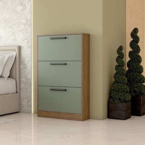 O(a) Sapateira Roma 3 Portas Freijo/Oliva - Loja é produzido em MDP na escala de brilho Brilhante, e possui um grau de dificuldade de montagem: Médio.