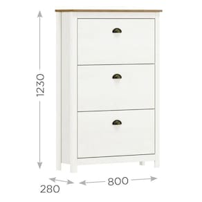A Sapateira Topázio 3 Gavetas da Finestra Móveis é a escolha ideal para quem busca organização, funcionalidade e um toque clássico na decoração. Produzida com estrutura em madeira maciça de pinus de reflorestamento, oferece resistência e durabilidade, além de acabamento refinado com pintura acetinada em verniz PU e UV. Composta por 3 gavetas espaçosas, é capaz de armazenar de 11 a 20 pares de calçados, acomodando modelos de até o tamanho 42. Os puxadores metálicos em ouro envelhecido agregam charme ao design, enquanto os pés alongados em madeira maciça conferem estabilidade e elegância ao móvel. É uma peça funcional e versátil, ideal para manter seus sapatos sempre organizados com praticidade e estilo.