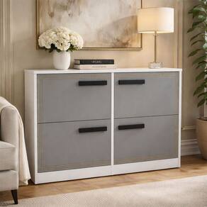 O(a) Sapateira Valência 4 Portas Cinza/Branco - Politono é produzido em MDP na escala de brilho Semi-Fosco, e possui um grau de dificuldade de montagem: Médio.