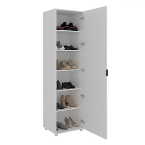 O(a) Sapateira Versa Home 1 Porta 5 Prateleiras com Espelho Branco - Telasul é produzido em MDP na escala de brilho Acetinado, e possui um grau de dificuldade de montagem: Médio.