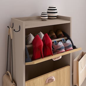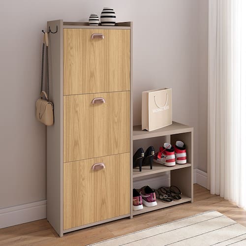 Sapateira Vertical 3 Gavetas Banco Prateleira Sapatos Gancho Bolsa Hall Entrada Quarto Dakota - Bege Claro