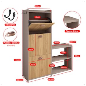 * Comporta até 18 pares de calçados (Contabilizando espaçamento do banco e prateleira);