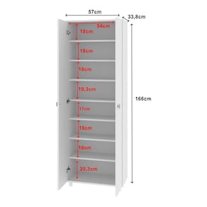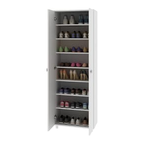Características: - 2 portas com dobradiças metálicas que ajudam a manter os calçados protegidos e o ambiente visualmente harmonioso. - 7 prateleiras e capacidade total de até 24 pares de calçados, otimizando o espaço. - As prateleiras suportam até 10kg em cada, oferecendo segurança no uso diário. - Produzida em MDP de 15mm com acabamento em pintura UV, unindo durabilidade e resistência. - Pés em PVC que garantem estabilidade e facilitam a limpeza do ambiente. - Puxadores metálicos que trazem praticidade e um toque moderno ao design.