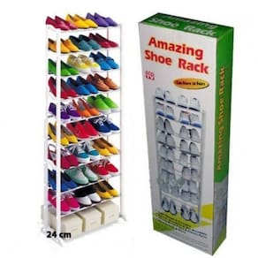 Sapateira Vertical De Chao Gigante Com 10 Prateleiras 30 Pares De Sapatao Organizador Tenis Quarto Closet Sapateira Modular em PVC com Tubos de Metal Organização e Versatilidade para o Seu Espaço Fácil de montar e desmontar. Ideal para guardar sapatos, tênis, sandálias, chinelos, botas e muito mais. Capacidade aproximada para 20 pares de sapatos adultos ou até 30 pares de sapatilhas femininas (tamanho pequeno) ou calçados infantis. Encaixes práticos para unir duas ou mais unidades, aumentando a capacidade de armazenamento ou criando uma sapateira maior e ajustável.