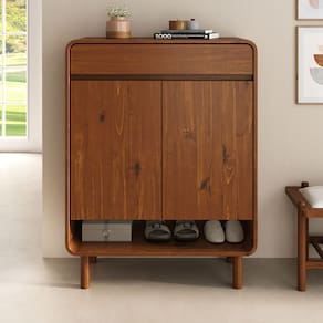 100% madeira maciça. Feito para durar. A Sapateira Juan traz design contemporâneo com cantos arredondados e acabamento em tom natural que valoriza os veios da madeira. Além da estética sofisticada, sua estrutura foi pensada para oferecer máxima funcionalidade no dia a dia: Uma gaveta e duas portas com três prateleiras internas reguláveis em altura, que permitem organizar desde sapatos baixos até pares maiores, tamanhos 44 e 45, sem apertos. O espaço interno comporta de 13 a 15 pares com folga, podendo chegar a até 18 pares quando ajustada para sapatos mais compactos. O nicho aberto na base é perfeito para manter sempre à mão os pares de uso frequente, enquanto a gaveta superior acomoda acessórios como meias, carteiras ou itens de cuidado com os calçados. Com pés altos e firmes, ela transmite leveza visual e facilita a limpeza do ambiente. Mais do que uma sapateira, a Juan é um móvel de apoio elegante e versátil, ideal para halls de entrada, quartos ou closets que pedem organização sem abrir mão do design. Dimensões do Produto: Largura: 79 cm | Altura: 104 cm | Profundidade: 37 cm | Peso: 27 Kg Tamanho Máximo do Sapato: 45 | Quantidade de Pares: 18 Dimensões da Gaveta: Largura: 75 cm | Altura: 9 cm | Profundidade: 30 cm Materiais e Acabamento: Material da Estrutura: Madeira Maciça | Tipo da Madeira: Pinus | Material de Fundo: MDF CARB | Fundos das Gavetas: MDF CARB | Escala de Brilho: Fosco | Material dos Pés: Pinus Maciço | Recomendação de Limpeza: Utilize pano levemente úmido Características do Produto: Quantidade de Prateleiras: 3 | Quantidade de Portas: 2 | Quantidade de Gavetas: 1 | Possui Rodízio: Não | Possui Gavetas: Sim | Estilo: Slim | Tipos de Corrediça: Telescópica | Tipo de Puxador Gaveta: Cava | Ambiente Principal: Sala de Entrada ou Quartos | Peças: Podendo conter madeira de finger em sua composição | Precisa de Montagem: Sim | Sistema de Montagem: Minifix / Cavilhas / Parafusos | Complexidade da Montagem: Médio | Volumes: 01 | Garantia do Fabricante: 12 meses | Montagem: Recomendamos que seja feita por um | Manual de Montagem: Sim Diferenciais: Produto Versátil | Design Moderno/Rústico | Madeira Maciça | Mais Resistente que MDF | Móvel Sustentável | Madeira Certificada | Pintura Livre de Solventes | MDF Livre de Formaldeído | Produto Qualidade Europeia Padrão de Cor: Nossa tinta à base de água é uma opção ecologicamente consciente e segura para a pintura, além disso, a tinta à base de água permite uma visualização dos veios da madeira, indicando robustez do produto. Madeira Maciça: Nossa madeira é proveniente de recursos naturais e é tratada de forma ecologicamente correta para o bem do meio ambiente. Sua resistência e vida útil é superior a móveis de chapa MDF utilizadas pelo mercado. Nossa madeira possui mais resistência ao desgaste natural do tempo, agregando mais durabilidade ao seu produto. Pensando na qualidade dos produtos, possuímos equipes de controle de qualidade para selecionar madeiras ideais para seu produto. Informações Importantes: Montagem e Desmontagem não inclusa ao produto, de responsabilidade do cliente. Não nos responsabilizamos, no ato da entrega, por subir escadas/elevadores ou transporte por guincho em apartamentos. Eventuais despesas são de responsabilidade do comprador. Ao receber a mercadoria, o cliente deve verificar as condições da embalagem, caso haja alguma dano não assine o comprovante de recebimento. Objetos que ambientam as fotos não acompanham o produto. Imagens meramente ilustrativas. Cores e tonalidades podem variar. O conjunto não pode ficar exposto ao Sol ou Chuva.