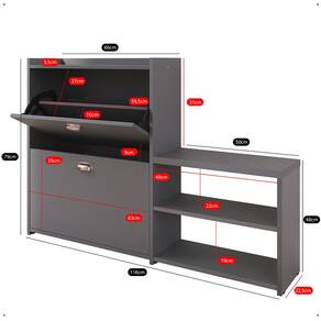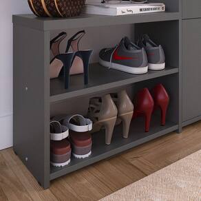 INFORMAÇÕES DO PRODUTO: * Altura: 79 centímetros; * Largura: 116 centímetros; * Profundidade: 22,5 centímetros; * Peso suportado: * Banco: 65 Kg * Corpo: 15 kg bem distribuídos * Peso total suportado: 80kg bem distribuídos; * 1 Prateleira; * Acompanha sapatas; * 2 Gavetas Basculantes; * Puxador Concha (Lauren); * Produzida em MDP 15mm e 25mm; * Comporta até 21 pares de calçados; * Não recomendado para calçados de numeração acima de 40; * Não recomendado para calçados de cano alto, como: Botas e Coturnos;